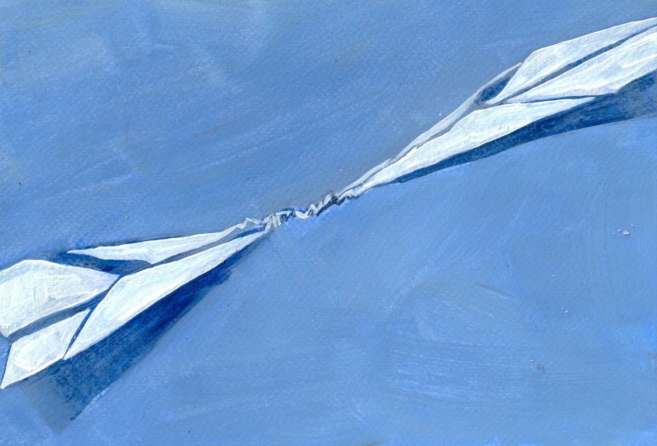 “Miscommunication” (2025) Watercolor, acrylic on watercolor paper.